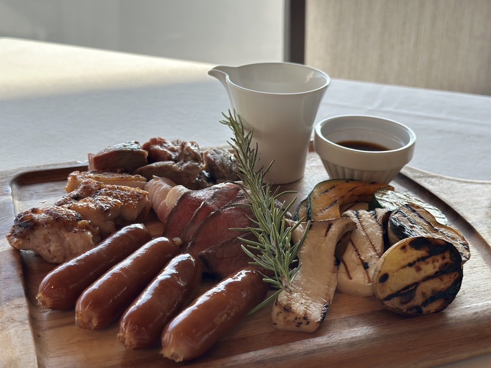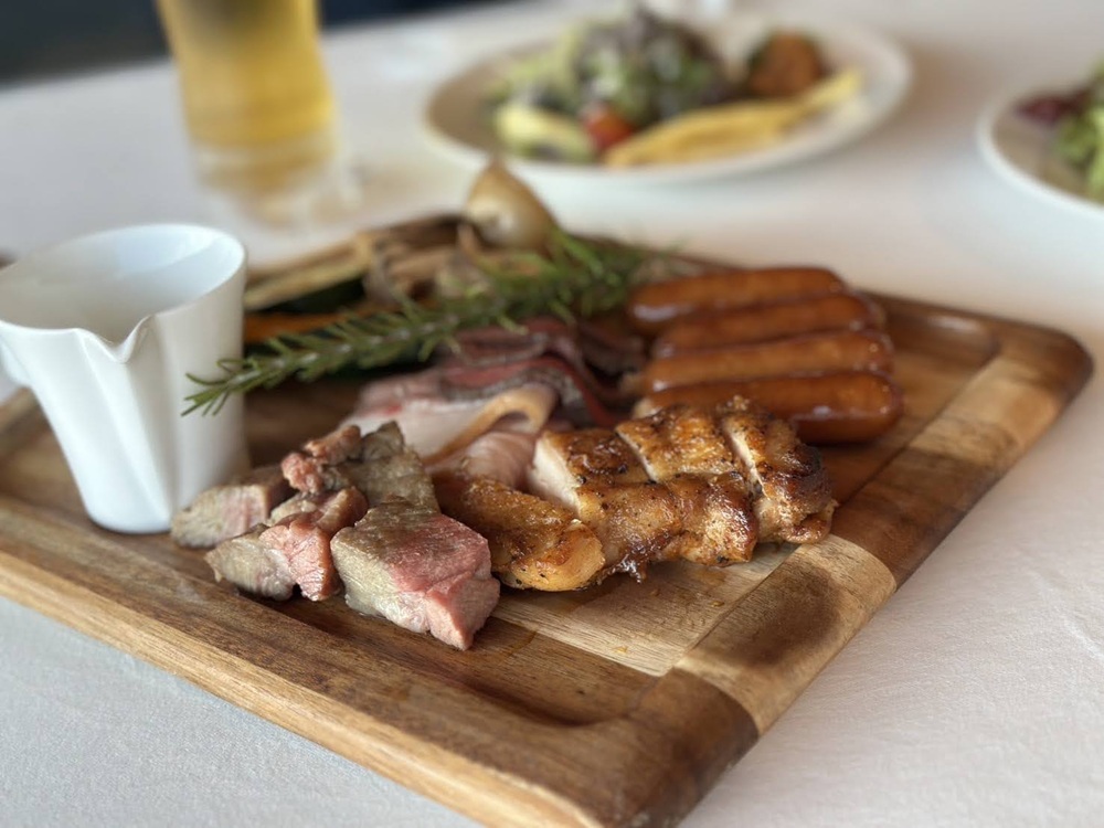 お料理はミートプレート、食べ放題のサイドメニュー、ドリンクは飲み放題!