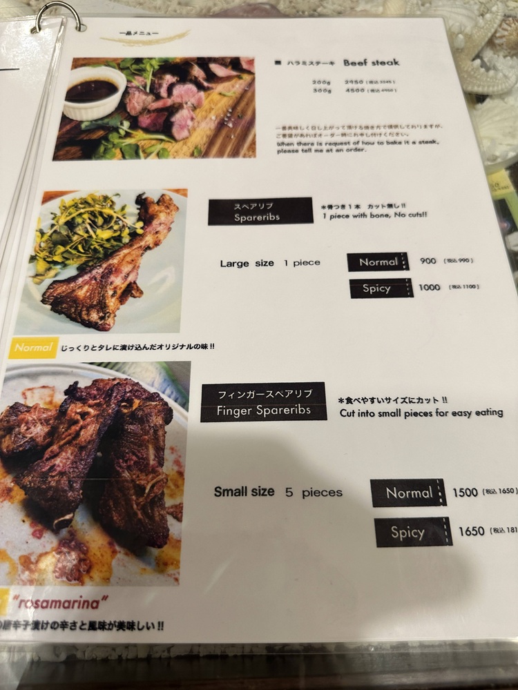 看板メニューはジューシーで豪快な「スペアリブ」とヘルシーで柔らかい牛ハラミステーキ。