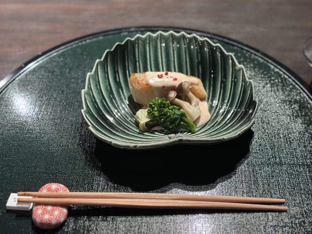 鰈はとても肉厚で、酒盗の旨みとクリームのコクが重なり合う、和洋折衷の一皿。
