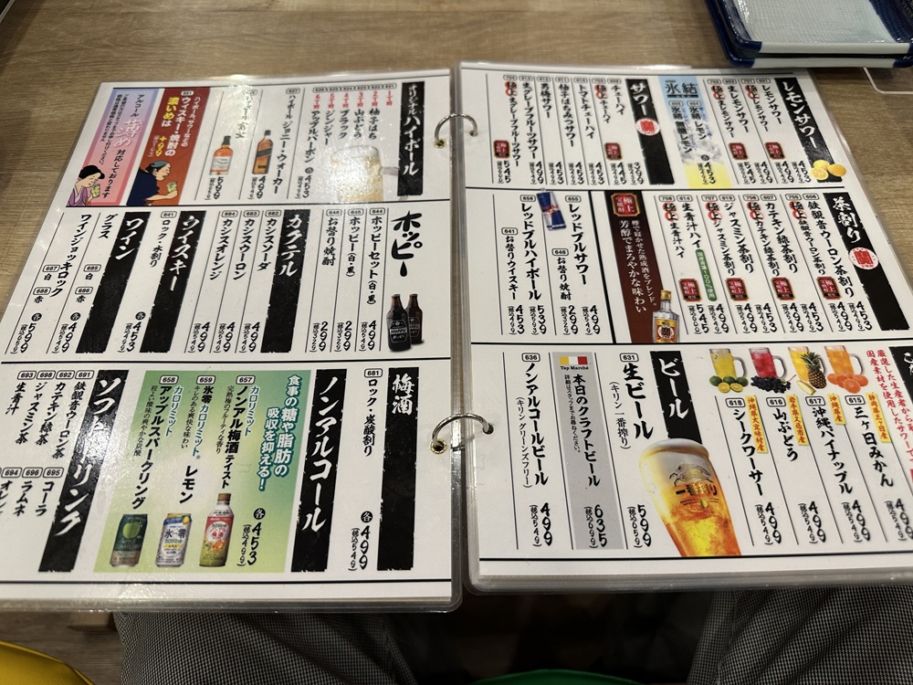 飲み物メニューはこんな感じ。