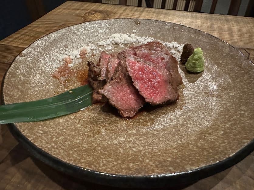 和牛イチボの炭火焼きは、炭火の香りが食欲をそそり、
