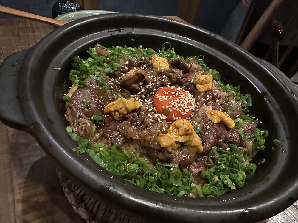 土鍋を開けた瞬間、雲丹の香りと牛肉の旨みが立ちのぼり圧巻!(゜o゜)